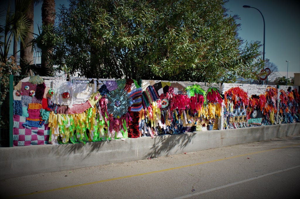 Intervention à l’Ecole Guynemer à Hyères : réalisation du décor de la palissade extérieur avec deux classes de CE2, avec Le Bazar du Lézard.