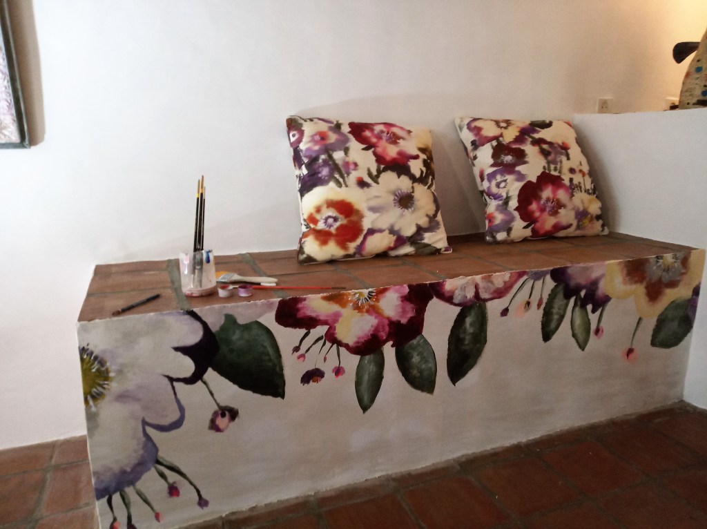 Détail Fresque fleurie acrylique