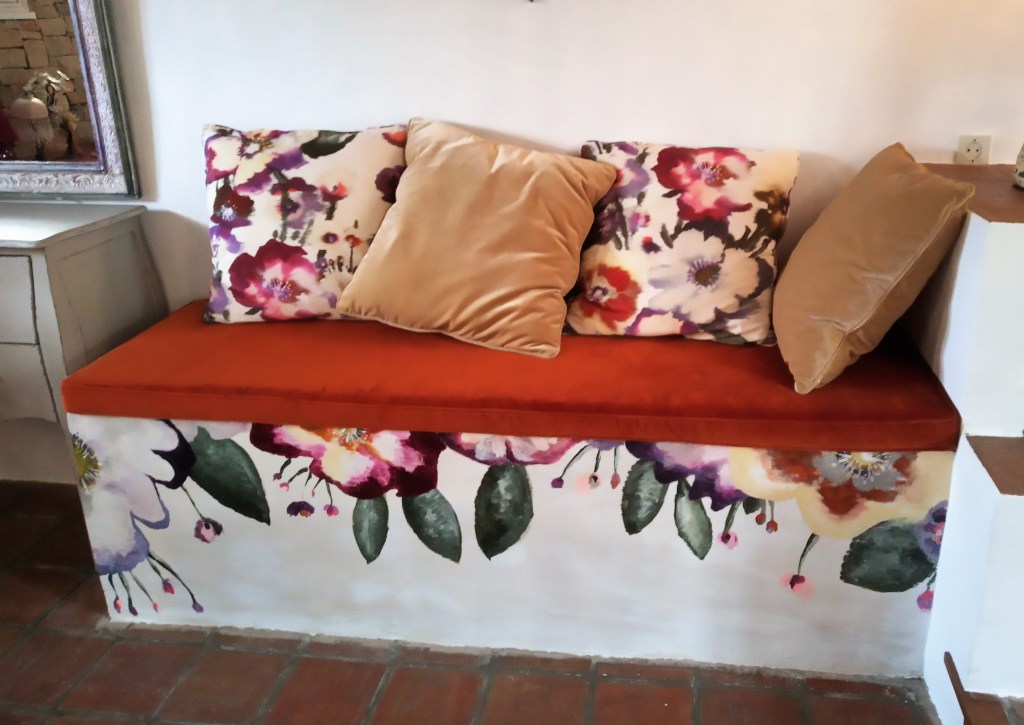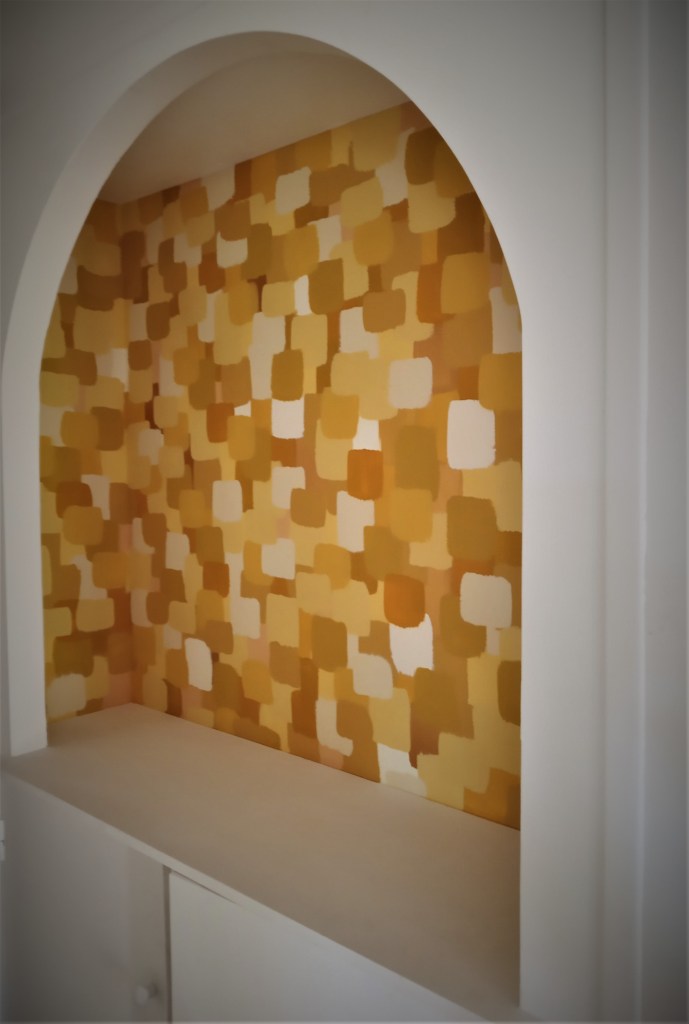 Décor peint sur plafond , feuillage à l’acrylique.Harmonie de tons chauds avec sous bassement/ tête de lit en bois peint.Panneau décoratif bois peint et mur rouge framboise.Transformation d’une cuisine par la couleur.Niche : décor peint en harmonie ocre, jaune et or.Zoom sur décor peint dans une niche.Agencement dans une petite entrée: rangements et panneau décoratif en bois peint.Aménagement et décoration d’une petite entrée.Aménagement et décoration d’une petite entrée.Détail d’un décor peint.Détail d’un décor peint.Détail d’un décor peint.Détail d’un décor peint.Détail d’un décor peint.Décor peint à l’acrylique.Pendant la réalisation.Détail d’un décor peint.Détail d’un décor peint.Détail d’un décor peint.Détail d’un décor peint.Décor peint sur une banquette , en harmonie avec les coussins de velours .