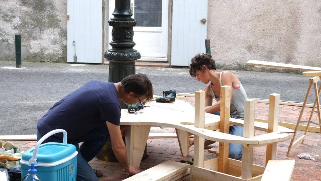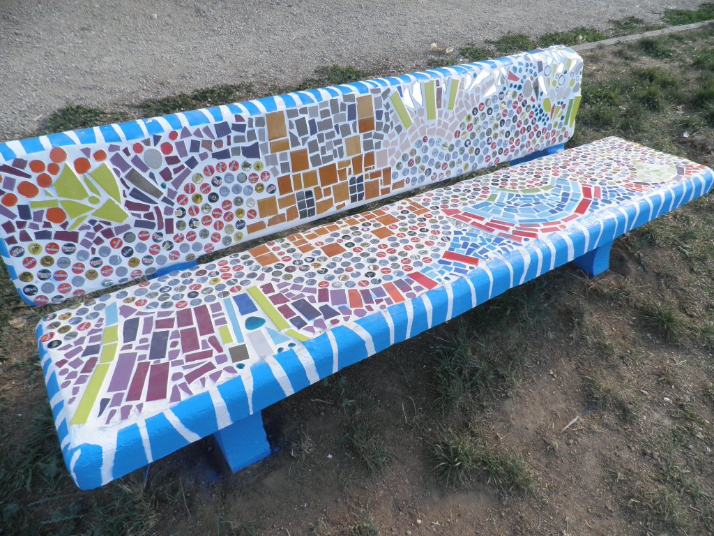 Création avec l’artiste Nicolas Baillieul et le Bazar du Lézard- Projet « Une place pour tous » ville de Saint Maximin.Réalisation de bancs: Colla Bailleul et Elise Picot avec le Bazar du Lézard. Création avec l’artiste Nicolas Baillieul — Projet Une place pour tous avec la ville de Saint Maximin et le Bazar du Lézard.Oiseau MEGA COLOR réalisé avec les enfants du centre ville de St Maximin. Projet « Une place pour tous ».Réalisation avec les jeunes pour embellir leur quartier: trencadis avec capsules et morceaux de carrelages.